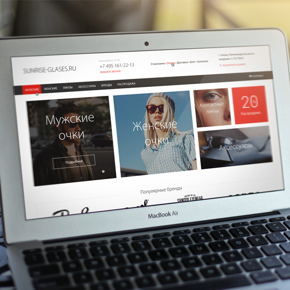 Современный шаблон магазина очков и контактных линз с удобным поиском по товарам, стильными баннерами на главной странице, выпадающем многоуровневым основным меню, интересно оформленным сквозным блоком «посмотреть на карте», модулем блог и возможностью подключить любой из доступных модулей в DIAFAN.CMS.Разделы, касающиеся компании, условий доставки и оплаты вынесены в верхнее меню. Информативно оформлен список товаров: при наведении во всплывающем окне можно выбрать дополнительные параметры, купить в один клик или добавить товар в корзину.Любой из отображаемых блоков на главной и на внутренних страницах сайта скрывается в панели администрирования без потери общего стиля и композиции сайта.Легкость и простота замены основных элементов оформления сайта, редактируемое основное меню, функционал поиска в каталоге товаров по параметрам делают этот шаблон универсальным, готовым к использованию на сайтах любого направления, основу которых составляет интернет-магазин, например: детская одежда, игрушки, косметика, промышленные товары, оборудование, бижутерия, двери, картины, обои, обувь, плитка и многое другое.